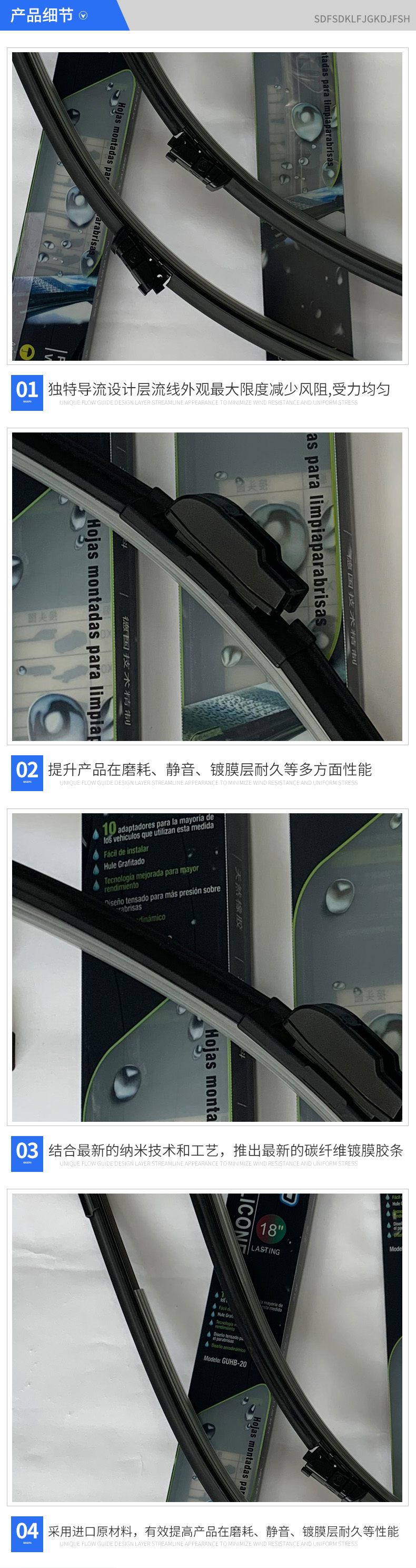 本公司產品涵蓋通用無骨雨刷、多功能一體雨刷、專車專用定制雨刷、雪刷等。我司產品外觀款式設計別具風格,特別在硅膠膠條方面,歷經二十多年的研發改良,有著獨特的開發和應用經驗,在大中華區域獨樹一幟。