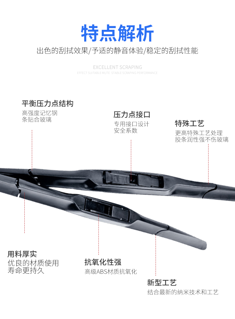 本公司產品涵蓋通用無骨雨刷、多功能一體雨刷、專車專用定制雨刷、雪刷等。我司產品外觀款式設計別具風格,特別在硅膠膠條方面,歷經二十多年的研發改良,有著獨特的開發和應用經驗,在大中華區域獨樹一幟。