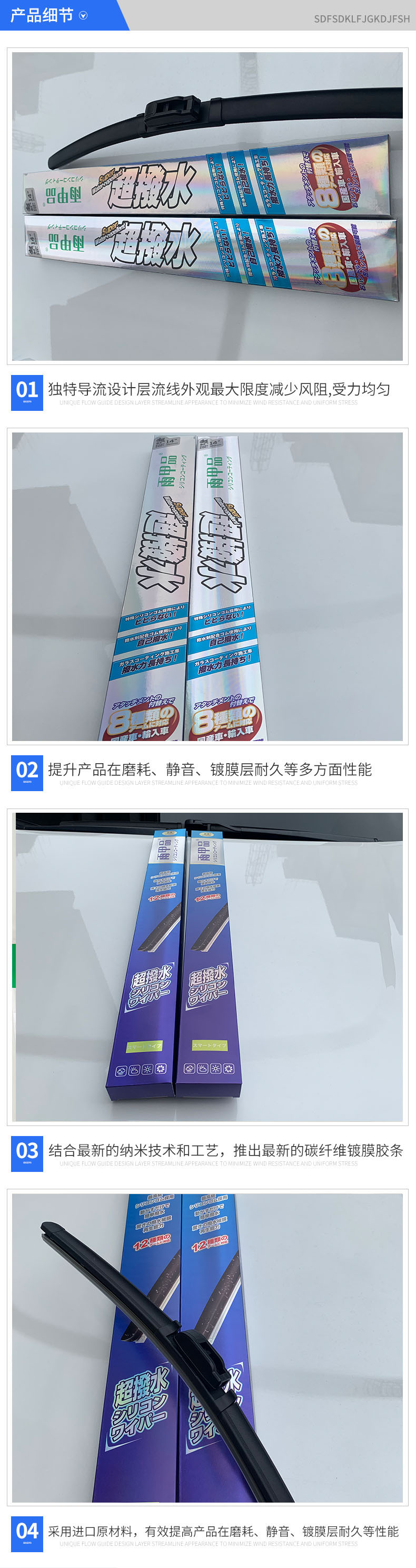 新視途汽車配件有限公司針對汽車售后市場,潛心專業(yè)專注的研究硅膠鍍膜技術(shù),專注改良、開發(fā)多款配方和工藝,多年來根據(jù)不同雨刷款型的需要,推出多系列通用和專用鍍膜膠條,目前結(jié)合最新的納米技術(shù)和工藝,再次推出最新的碳纖維鍍膜膠條,且采用德國進口原材料,有效提高產(chǎn)品在磨耗、靜音、鍍膜層耐久等性能,是普通雨刷數(shù)倍。